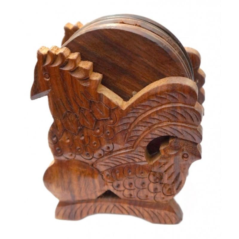 НАБОР 6 ПОДСТАВОК ПОД ГОРЯЧЕЕ ИЗ КРАСНОГО ДЕРЕВА ПЕТУХ