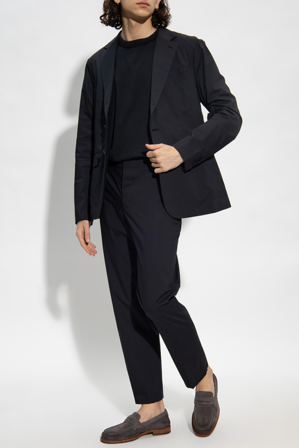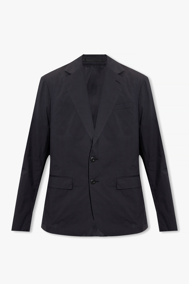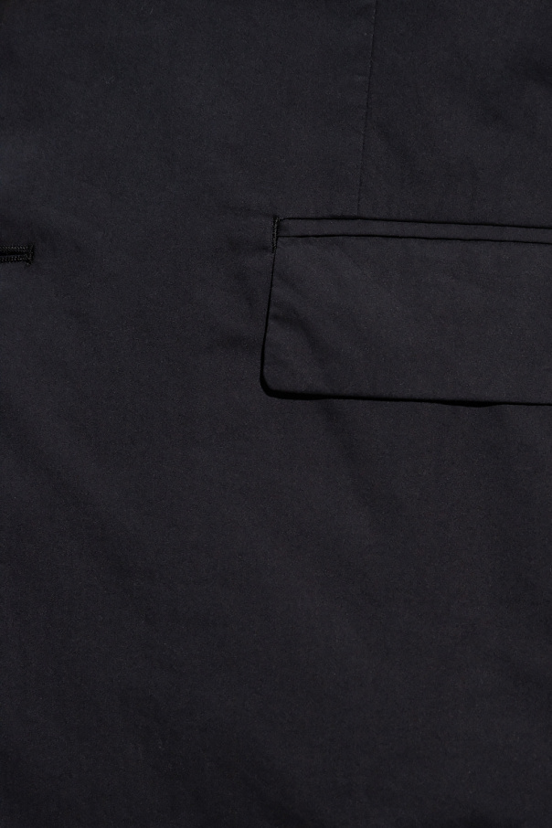 Navy ‘Canta’ blazer from AllSaints. Made of cotton. Fastened with buttons, this garment features button fastenings, two flap pockets, one slip pocket, long sleeves and single rear vent.