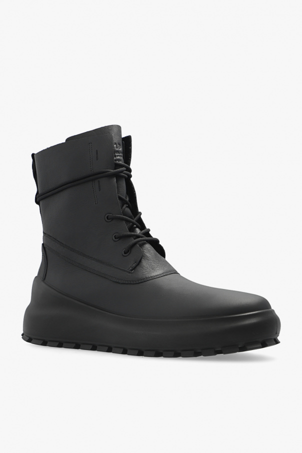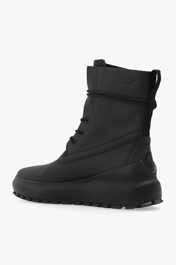 Black ankle boots from Stone Island x Ecco. Crafted from leather, this lace-up pair features light insulation, black logo at the back and black rubber sole.