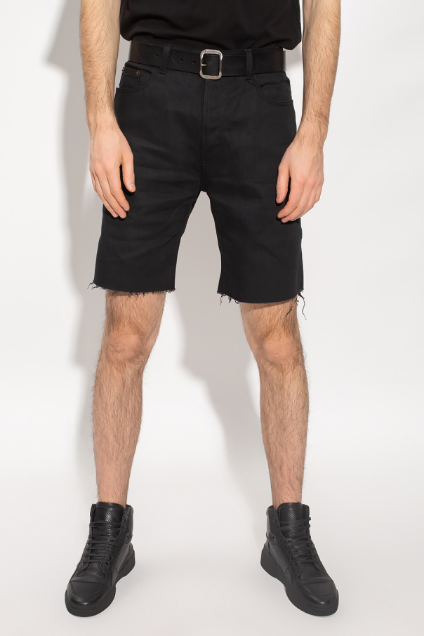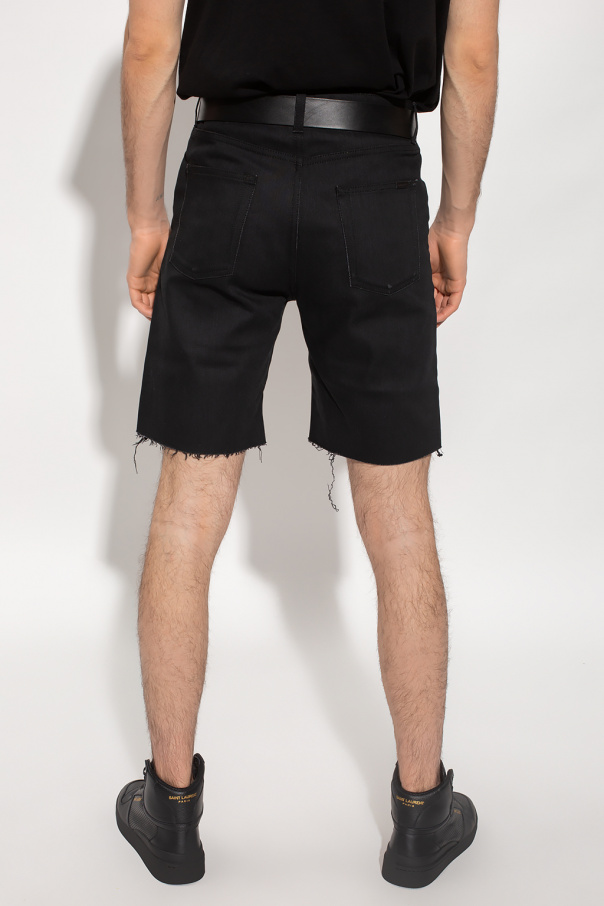Black denim shorts from Saint Laurent. Crafted from cotton, this pair features button fastenings, classic five pockets and raw hems.