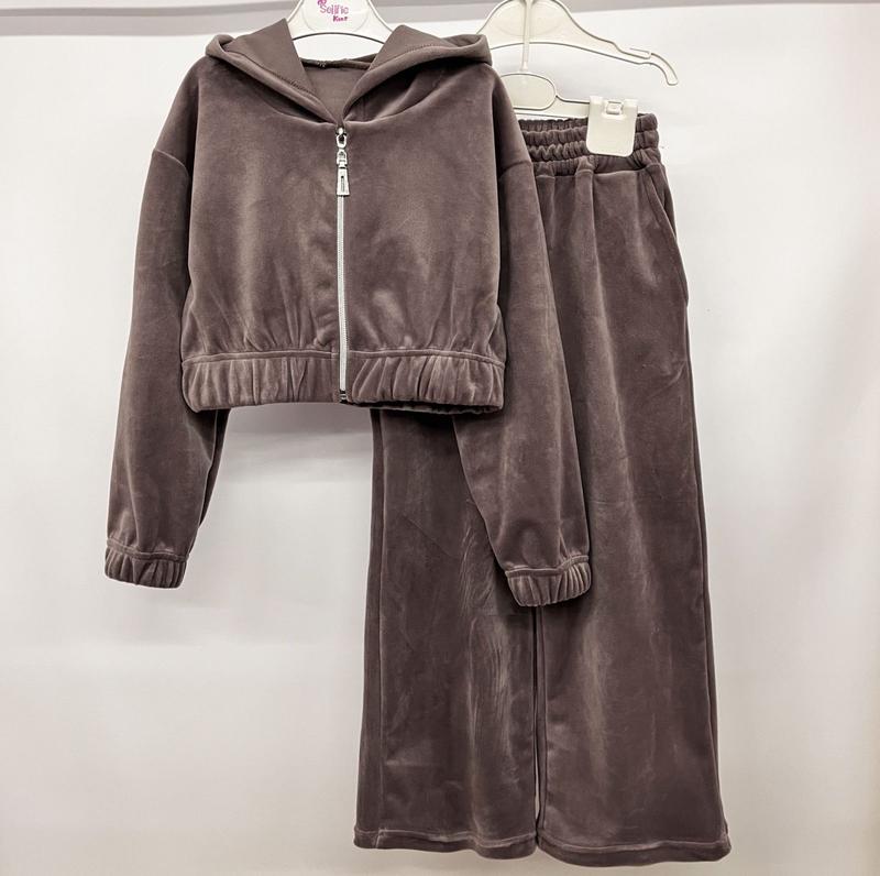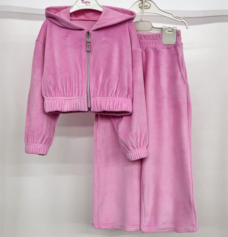 Костюм для девочки (джемпер с длинным рукавом, укороченный, низ и рукав под широкую резинку, есть капюшон, застежка молния + штаны палаццо с завышенной линией талии, покрой свободный, расширяются сразу от пояса), стильный и удобный костюм, подойдет от рост 128 см до 164 -170 см