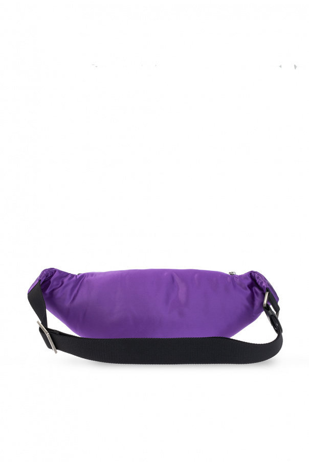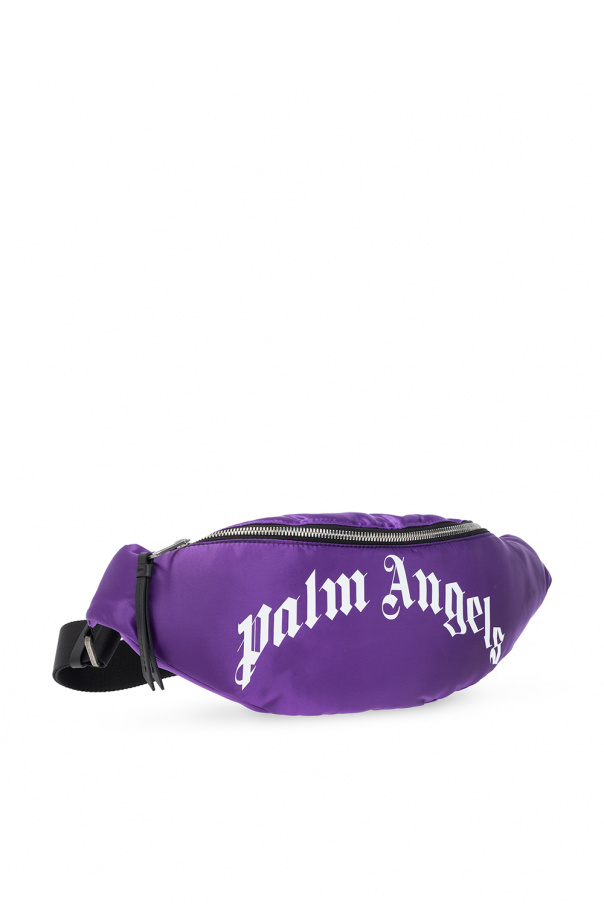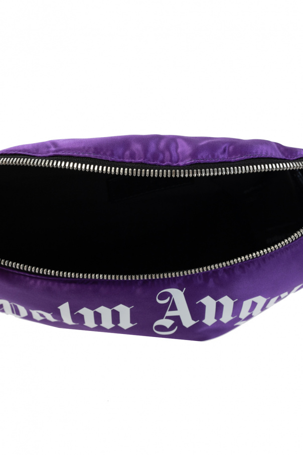 Purple belt bag from Palm Angels. Fastened with a zip, this garment features a printed logo pattern in white, adjustable belt, one internal compartment and silver-tone metal hardware.