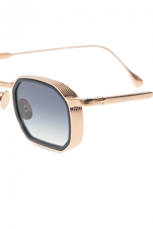 Black and gold-tone ‘Samuel’ sunglasses from John Dalia. With a square shape and rims carved out of a 8mm engraved metal strip, this pair is complete with a geometric bridge, 22-carat rose gold alloy acetate frame and dark navy gradient lenses with 100% UVA & UVB protection.
