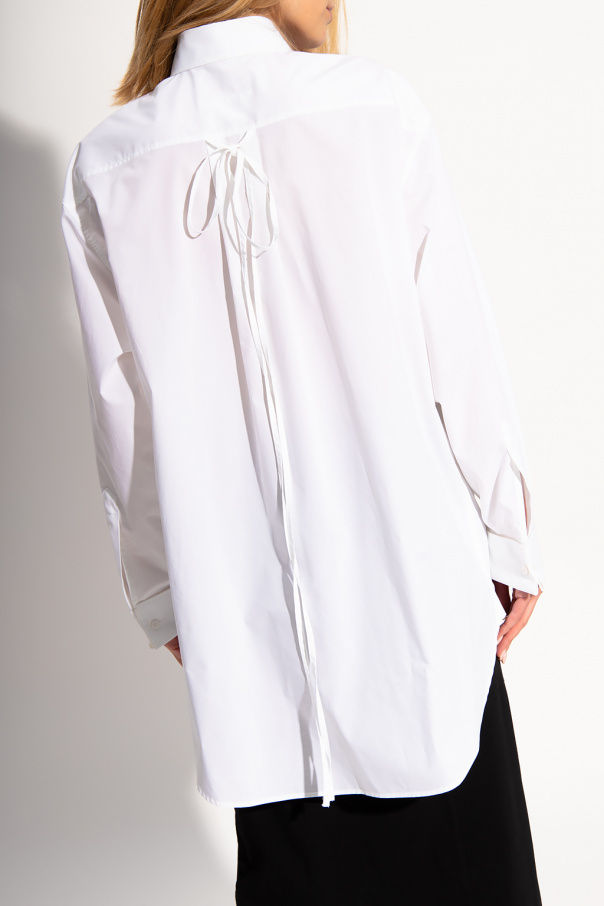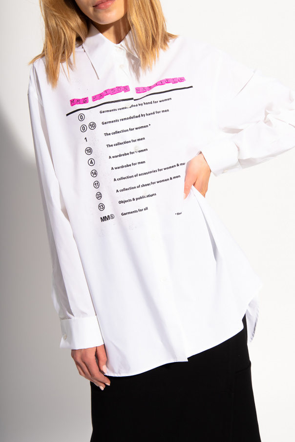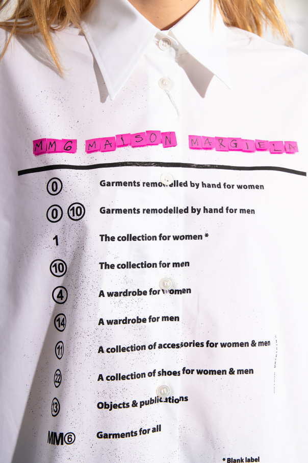 White shirt from MM6 Maison Margiela. Made of cotton, this design features a zip fastening and printed logo pattern.