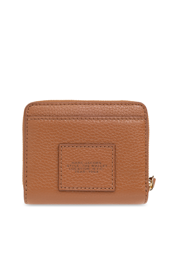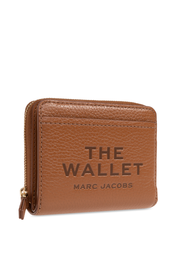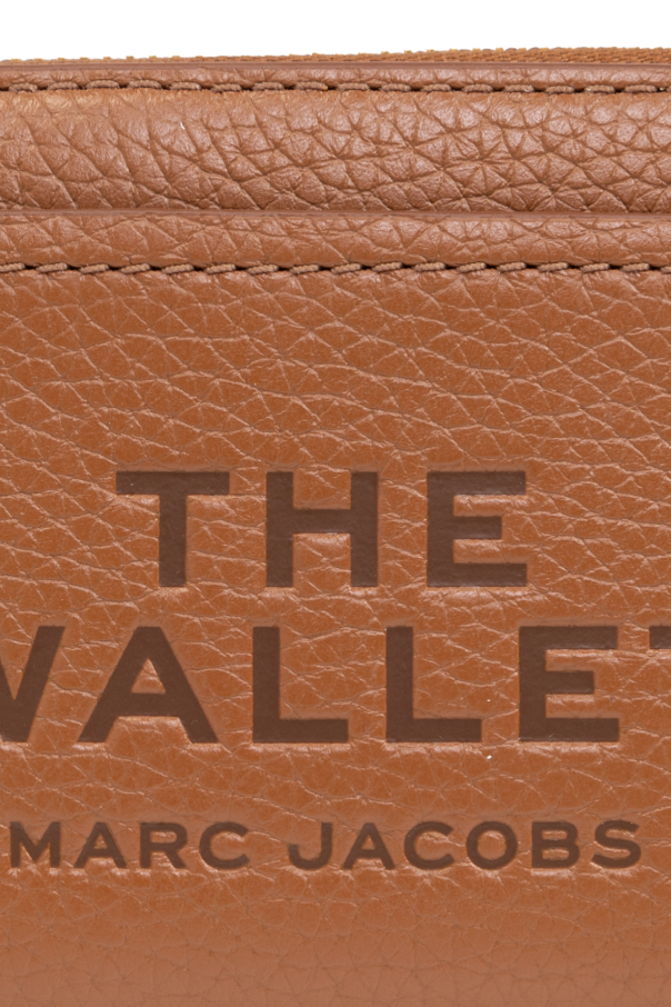 Brown wallet from Marc Jacobs. Made of grained leather, this item features an embossed logo, a patch, slip pocket on the front and back as well as one zipped coin pocket, one bill compartment, two slip pockets and four card slots inside.