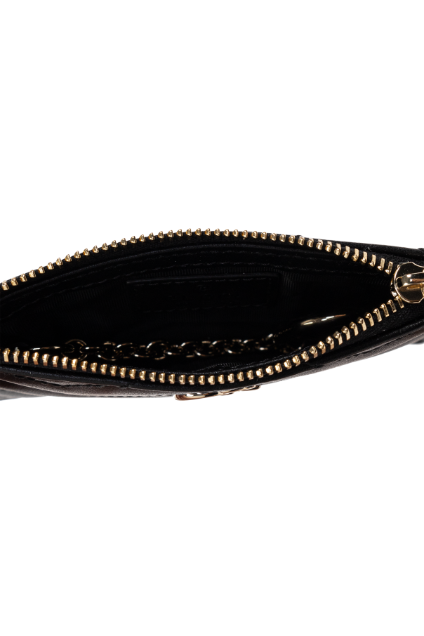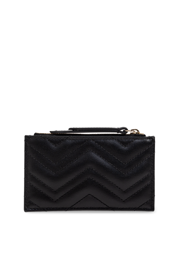 Introducing the exquisite Gucci Key Case, a testament to luxury and refined elegance. Crafted from premium leather, this accessory boasts a sophisticated zigzag quilting pattern that exudes classic allure. The sleek black hue enhances its timeless charm, making it a staple for the discerning individual. Adorned with a gold-toned metal logo on the front, this key case epitomizes exclusivity and status. The golden zipper closure not only amplifies its elegance but also ensures practicality. Inside, a functional chain provides a secure attachment for your keys, blending style with utility. Dlaczego warto kupić ten produkt? Designed by the iconic Alessandro Michele, revolutionizing Gucci\'s aesthetic. Handcrafted with impeccable Italian craftsmanship. Part of the distinguished luxury group, Kering. Combines expressive, innovative design with functionality.