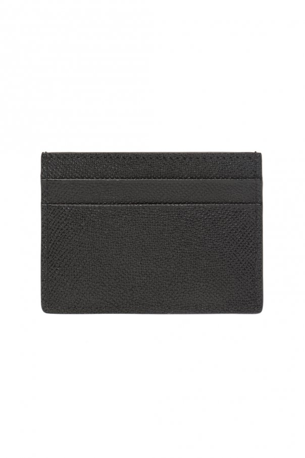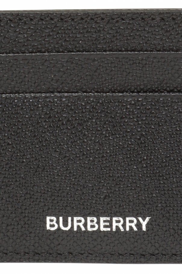 Black card case from Burberry. Made of calf leather with a texture throughout. It features an embossed logo on the front as well as 5 card slots.