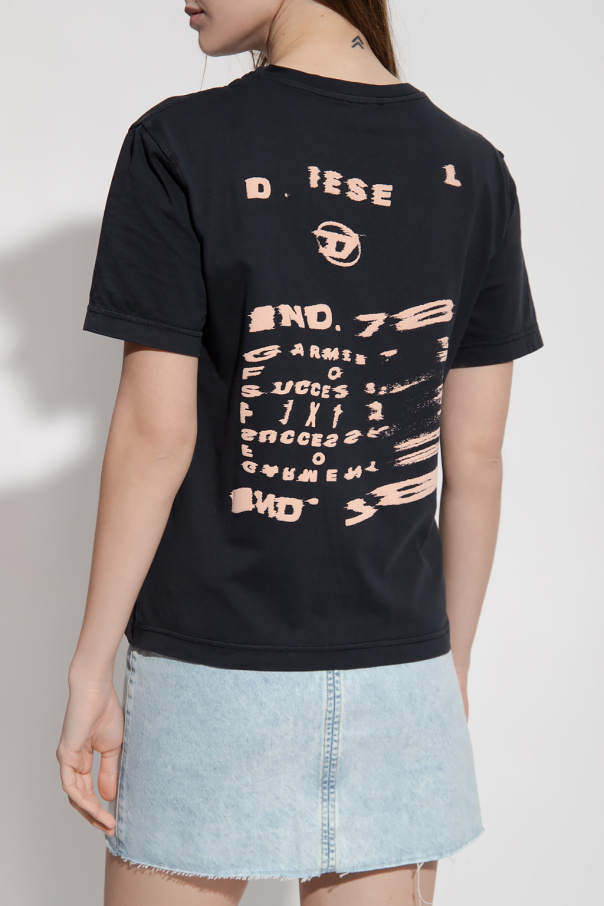 Black ‘T-DANNY’ T-shirt from Diesel. Made of cotton, this short sleeve design features a rubberized logo print in light pink and ribbed crew neck.