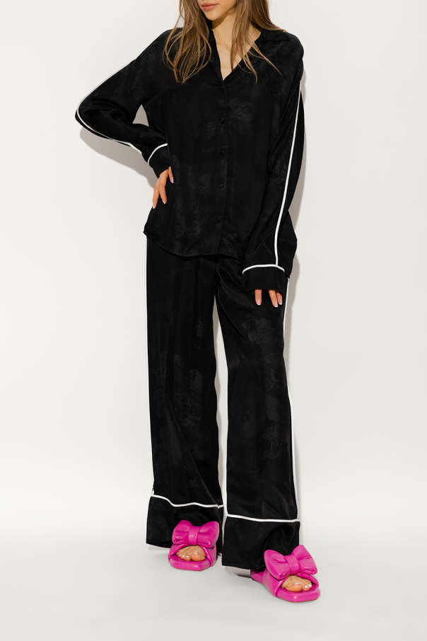 Pink slides from Off-White. Made of linen, this pair features a bow detail, square toe and brown leather sole.