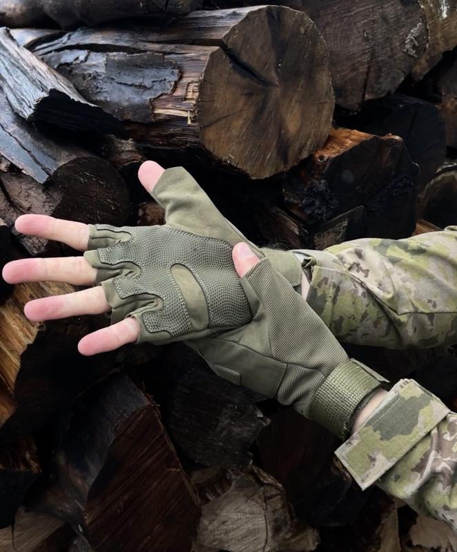 - Пальцы открыты, летом рука будет меньше потеть.Тактические перчатки беспалые ЗСУ защитные мужские Tactik хаки