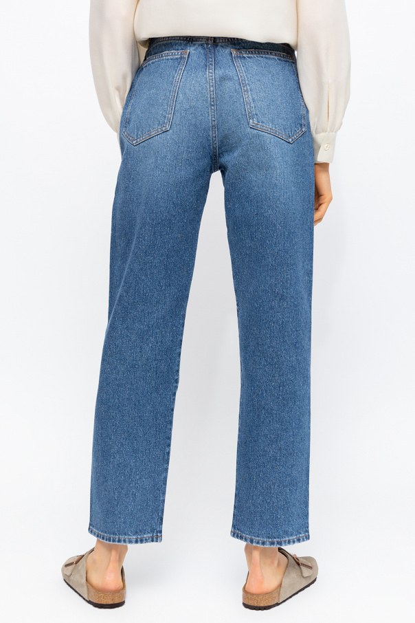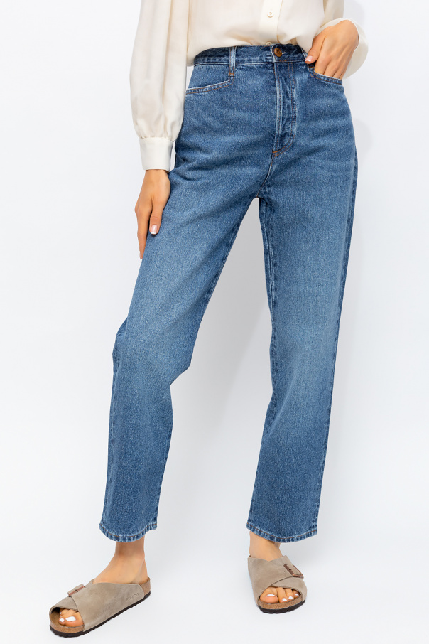 Blue high-waisted jeans from Chloé. Fastened with buttons, this garment features a logo embroidery, three front pockets, two back pockets and slightly tapered legs.