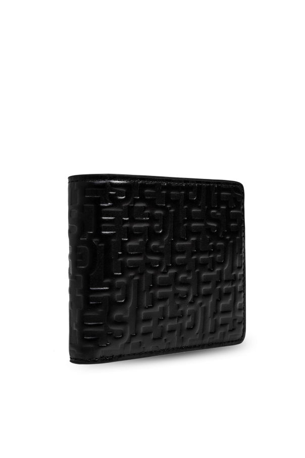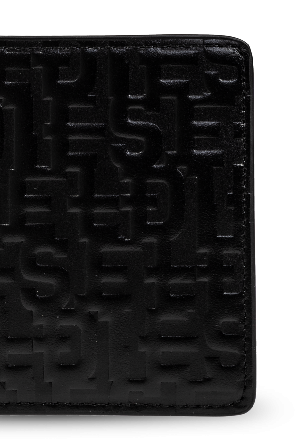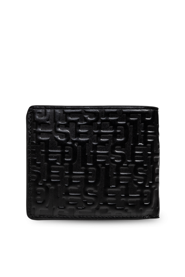 Introducing the PC MONOGRAM PC Wallet from the illustrious house of Diesel. This distinguished accessory, crafted from superior-quality materials, exudes an aura of sophistication and timeless elegance. Rendered in a dominant black hue, the wallet showcases a meticulously embossed, repetitive pattern of the iconic \"DIESEL\" lettering, bestowing it with a unique and recognizable aesthetic. Its classic rectangular silhouette is a definitive nod to traditional men\'s wallet designs. The interior is thoughtfully designed, featuring dual compartments for banknotes, four card slots, and three additional pockets—two slip-in and one secured by a flap. The pronounced \"DIESEL\" embossing on both the exterior and interior adds a touch of exclusivity. Elegantly finished with attention to every detail, this wallet epitomizes the brand\'s commitment to excellence and style. Why Choose This Product? Exclusive embossed \"DIESEL\" monogram pattern High-quality craftsmanship and materials Functional design with ample storage Timeless black color Renowned Diesel brand legacy