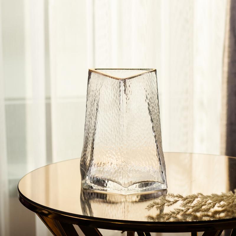 Высота: 16 см Форма: треугольная. Цвет: прозрачный с золотой окантовкой