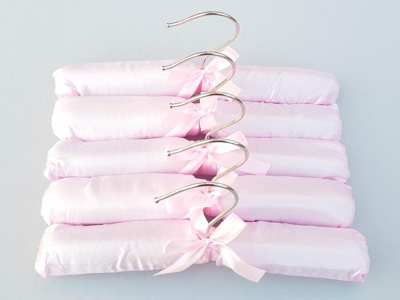 Плечики мягкие сатиновые нежно розового цвета, длина 25 см, ширина плеча 3 см,