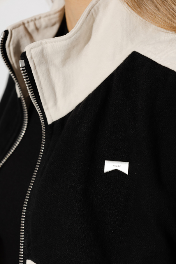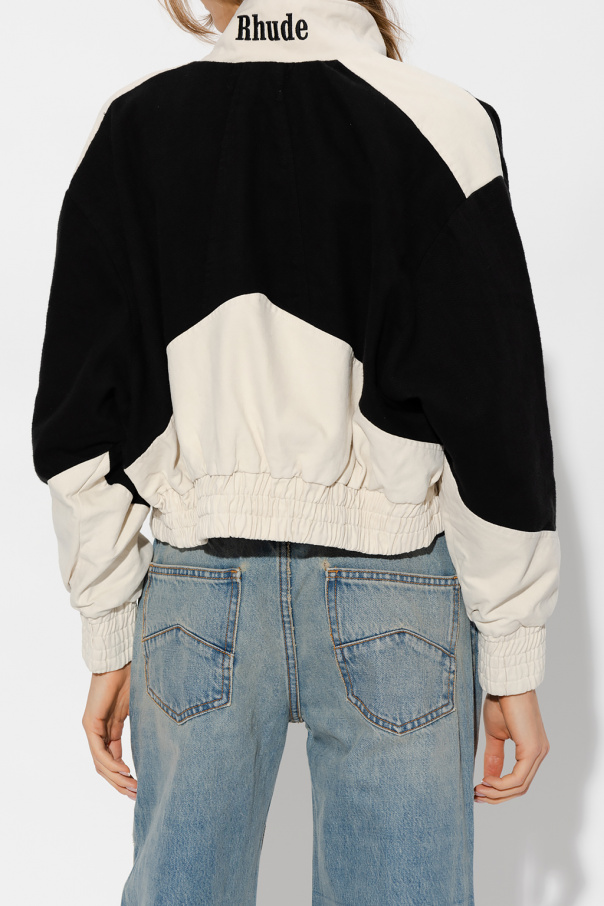 Black and cream jacket from Rhude. Crafted from cotton with a relaxed fit, this style features a cropped fit, a two-way zip fastening,long sleeves, two pockets and a silver-tone logo application on the front and logo embroidery on the collar.