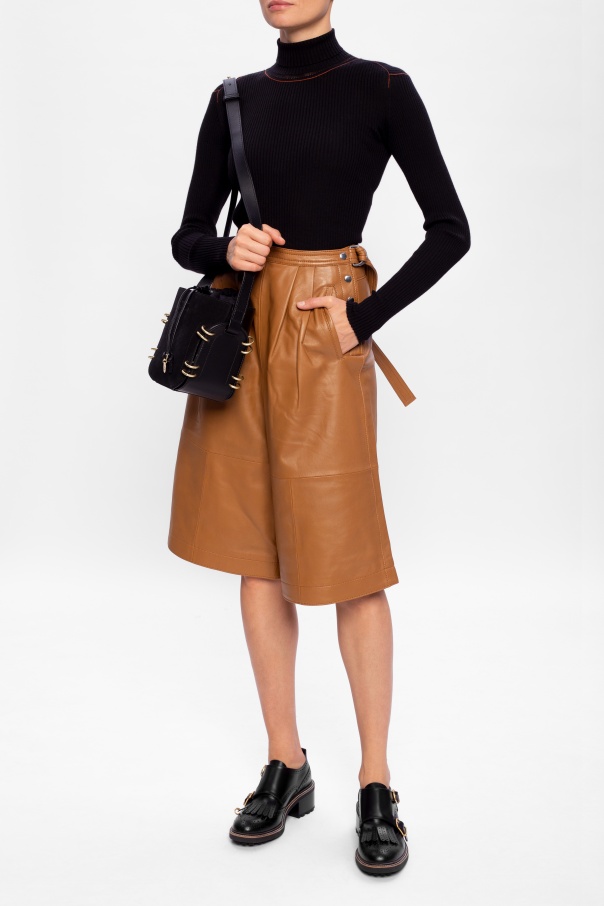 Black ‘Franne’ heeled shoes from Chloé. Crafted from calf leather, this model fastens with straps featuring gold-tone metal buckles and is complete with an embossed logo, perforations, leather appliqués and black rubber sole.