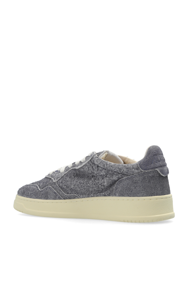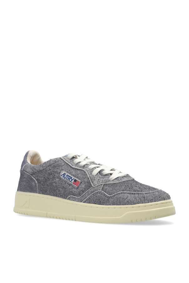 Medalist Low Sneakers by Autry are an epitome of refined elegance and supreme craftsmanship. These sophisticated sneakers boast a classic low-top design with a robust construction, highlighting their premium quality. Crafted from luxurious gray suede, these sneakers feature the iconic Autry logo and a subtle American flag emblem on the side, adding a touch of unique charm. The creamy sole, designed for maximum comfort, contrasts elegantly with the gray upper, while the white laces enhance their timeless appeal. Additional details include the Autry logo patch on the tongue and reinforced heel for added durability. The sneakers are versatile, pairing seamlessly with various wardrobe pieces, as showcased with wide-legged dark pants and an \"AMIRI\" jacket in the images. Why Choose These Sneakers? Exquisite gray suede material Comfortable and stylish cream-colored sole Distinctive Autry branding with American flag detail Durable construction with reinforced heel Versatile design suitable for various outfits