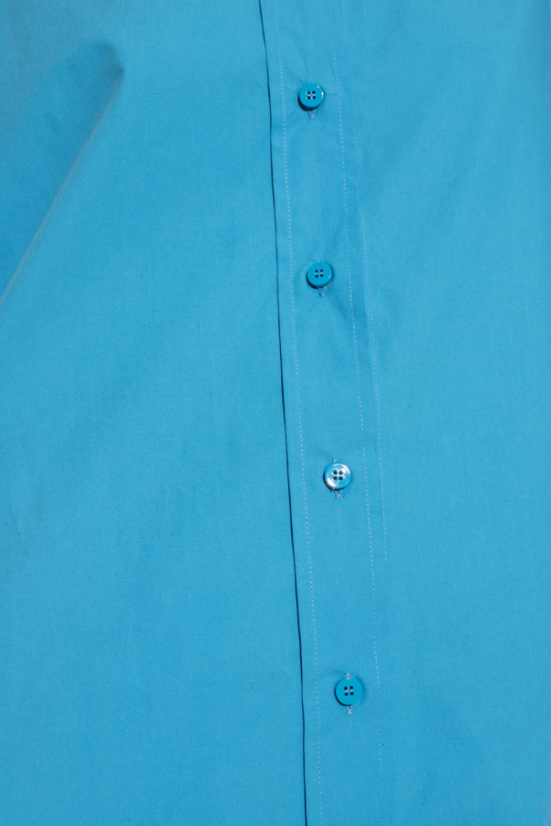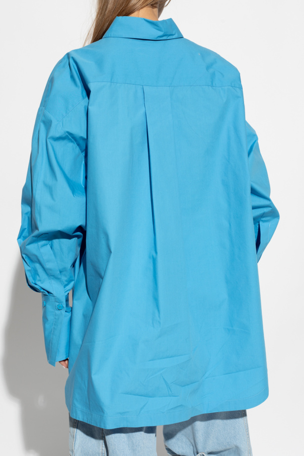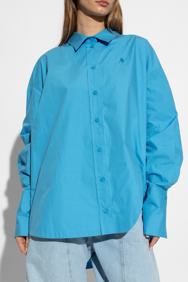 Blue ‘Diana’ shirt from The Attico. Crafted from cotton with an oversize fit, this style features button fastenings, tonal logo embroidery on the front, an asymmetrical hem and long sleeves with button cuffs.