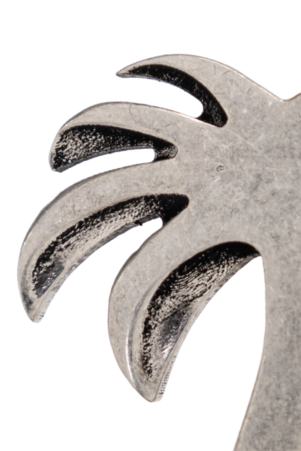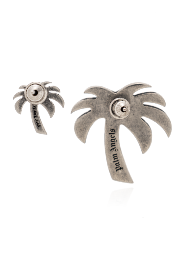 Silver-tone asymmetric earrings from Palm Angels. Made of brass, this push-back pair is decorated with a palm motif.