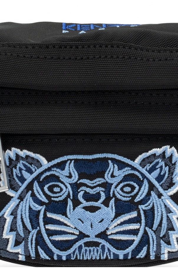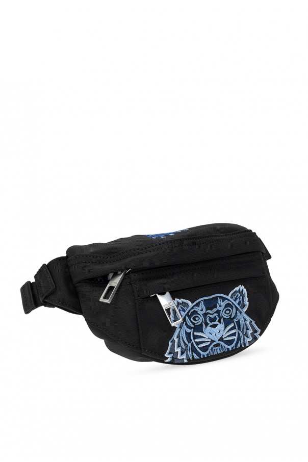 Black belt bag from Kenzo. Fastened with a zip, this design features a logo embroidery, the signature tiger head motif, front and back zip pocket, adjustable belt and silver-tone metal hardware.