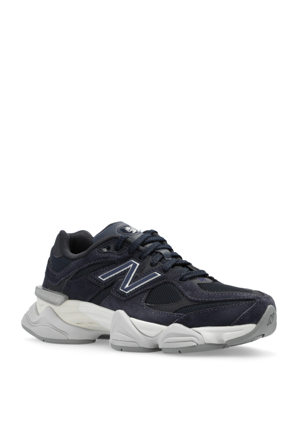 Navy blue, cream and grey ‘U9060NV’ sneakers from New Balance. With an upper made of mesh, leather and textured suede overlays, this lace-up model sits on a grey and cream rubber sole with a diamond pattern inspired by the classic design of the 860 and equipped with ABZORB cushioning technology. Its features include a tongue logo detail inspired by the original 991 lace jewel.