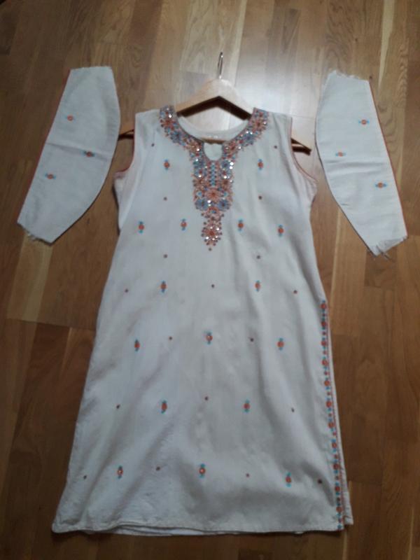 При желании можно пришить короткие рукава, детали шли в комплектеРазмер S, но как и большинство традиционных костюмов, хорошо садится на разные фигуры. подойдет и на XS, и на стройную M, ориентируйтесь по замерам.