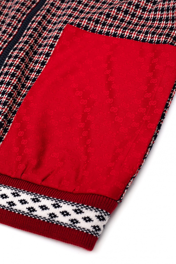 Red, beige and navy sweatshirt from Gucci Kids. Crafted from cotton, this item features a zip fastening, embroidered pattern, two pockets decorated with a logo pattern and ribbed trims.