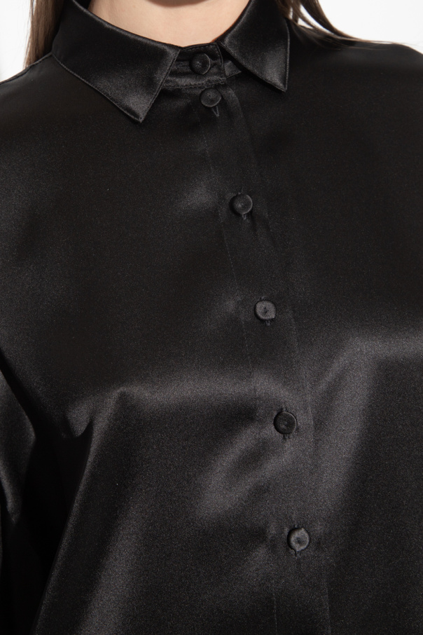 Black loose-fitting shirt from Emporio Armani. Made of silk satin, this garment features button fastenings and long sleeves with buttoned cuffs.