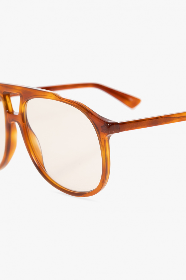 Brown aviator optical glasses from Gucci. Emblazoned with a gold-tone logo on the temples, this pair comes with a case in random colour.