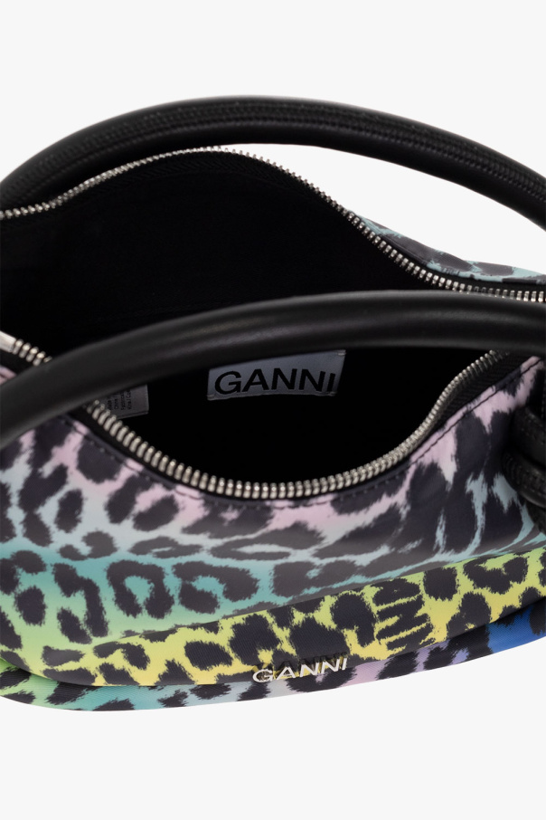 Multicolored shoulder bag from Ganni. Made of recycled fabric, this design features trimming in certified recycled leather, zip fastening, animal motif, metal logo, two half-round handles, detachable strap, one internal compartment and silver-tone metal hardware.