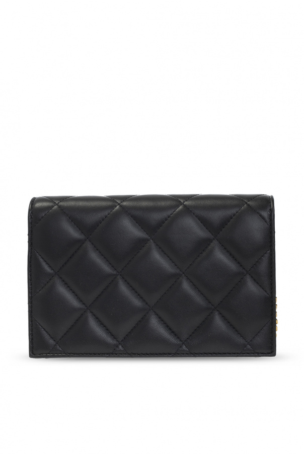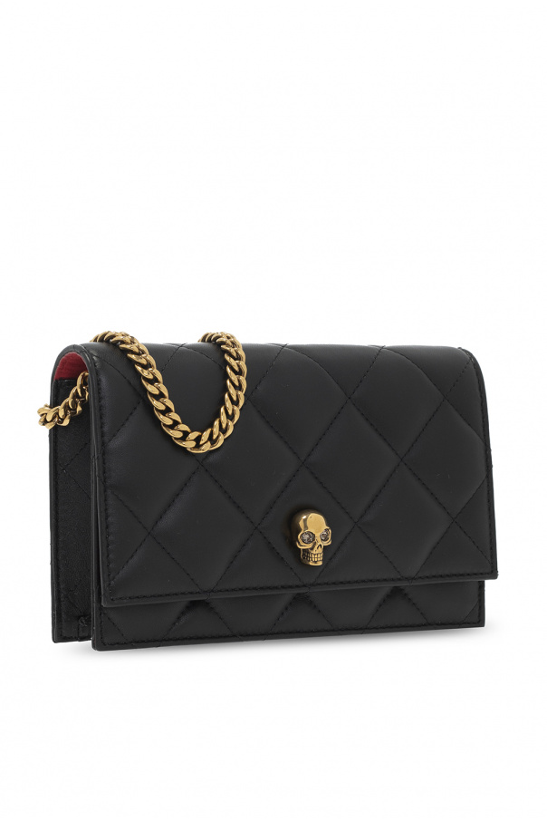Black ‘Skull Small’ quilted shoulder bag from Alexander McQueen. Made of calf leather, this design features a magnetic snap closure, a signature motif of a skull, a chain strap, silver-tone metal hardware and one internal compartment with a slip pocket.