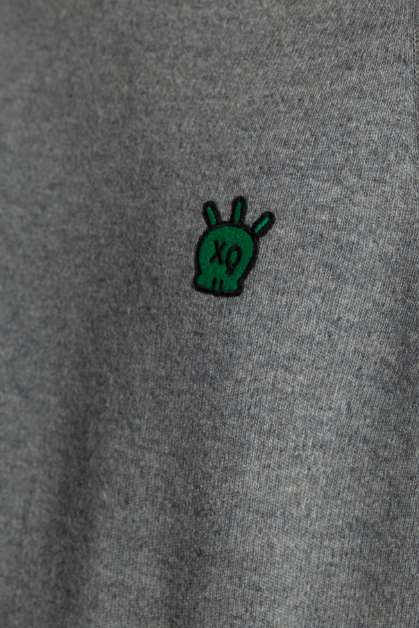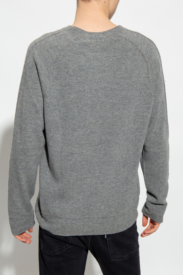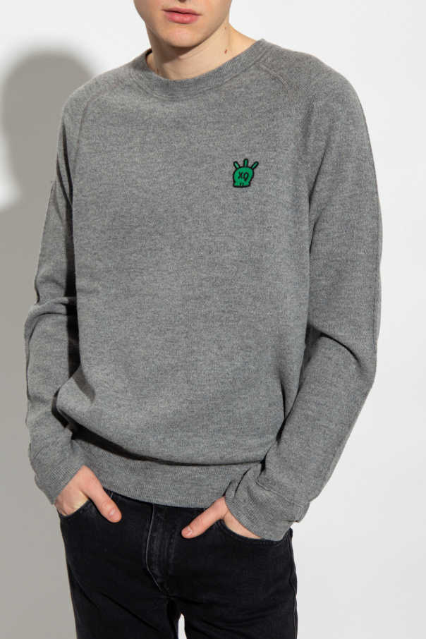 Grey ‘Thomas’ sweater from Zadig & Voltaire, the ‘XO Project’ collection. Made of merino wool, this garment features a green ‘Skull XO’ patch and ribbed trims at the neck, hem and cuffs.