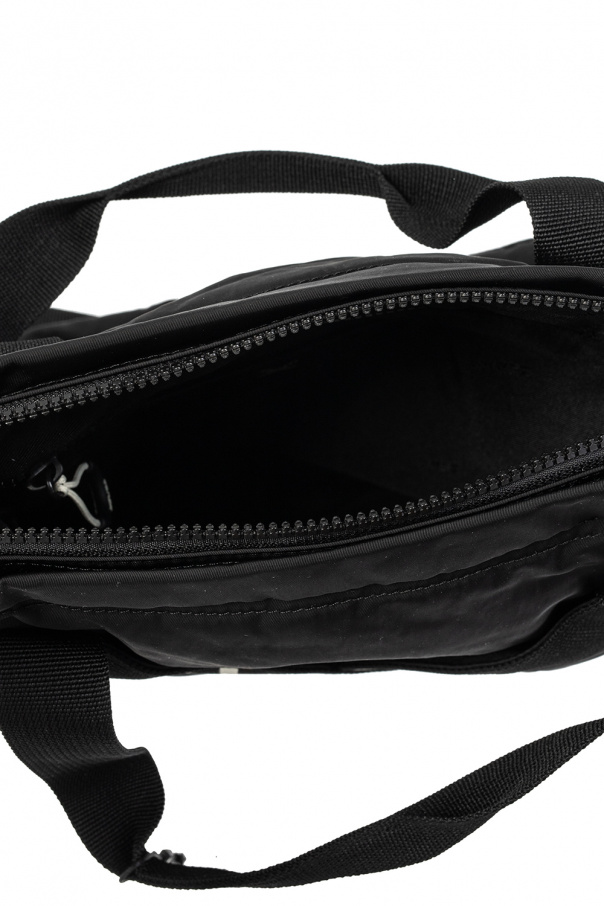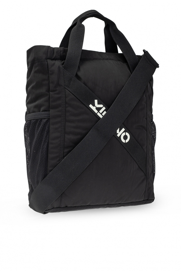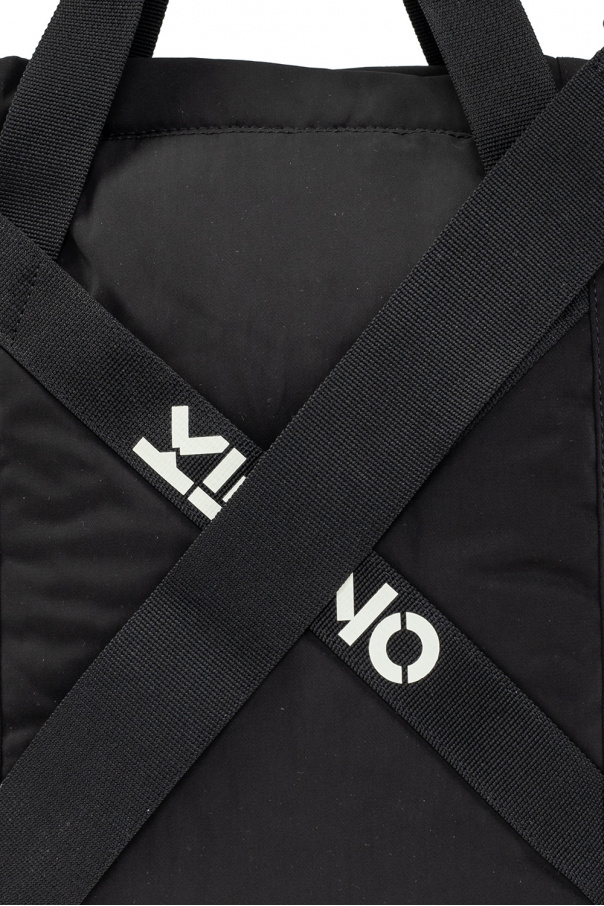 Black shoulder bag from Kenzo. Printed with the brand's logo, this design fastens via a zip and showcases one slip pocket on the front, two mesh pockets on the sides, two half-round handles, a detachable and adjustable shoulder strap and one internal compartment with one zip pocket and one card slot.
