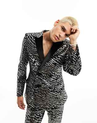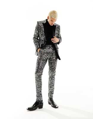 ASOS DESIGN super skinny velvet sequin suit in silver