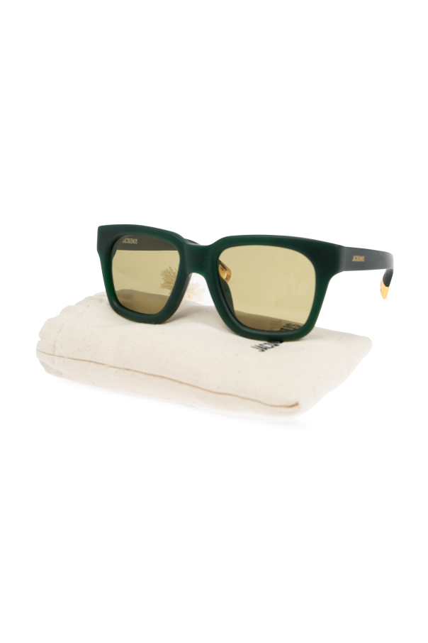 Introducing the epitome of contemporary elegance: the Jacquemus Sunglasses. Crafted with meticulous attention to detail, these sunglasses boast a bold, green hue that captures the essence of modern sophistication. The large, rectangular frames with gently rounded edges exude a sleek and stylish aesthetic, while the absence of ornamentation highlights the designer\'s commitment to simplicity and elegance. The frames are constructed from 100% high-quality Acetate, ensuring durability and a luxurious finish. The distinctive yellow-green, or golden, tint of the lenses offers a striking contrast against the darker frames, adding a unique character to the sunglasses. Moreover, subtle golden accents near the hinges, possibly marking the designer\'s signature, elevate the aesthetic value and brand recognition, making them a coveted piece in high-end eyewear collections. Designed to complement various face shapes, these sunglasses promise a universal appeal and comfortable fit, as demonstrated by their presentation on diverse models. The quality of the material is further hinted at by a delicate sheen under illumination, suggesting the use of premium Acetate in their construction. The lenses come with UV protection, marrying functionality with fashion in a way that only Jacquemus can. Why Purchase This Product? Exquisite, modern design by renowned designer Jacquemus. High-quality, durable Acetate construction. Universal fit, suitable for a variety of face shapes. Unique color palette and golden accents add exclusivity. Protective lenses with UV filtration for safety and comfort.