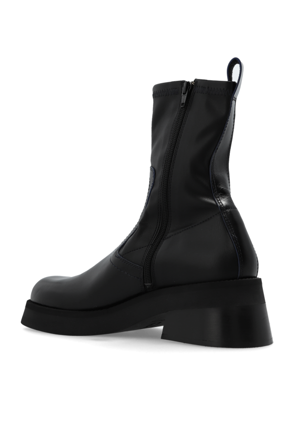 Presenting the exquisite Oliana Ankle Boots from our exclusive collection, an epitome of elegance and functionality. Crafted by the renowned brand Miista, these boots are designed in the heart of London\'s Hackney district and meticulously handmade by skilled artisans on the Atlantic coast of Spain. The Oliana Ankle Boots feature a classic rounded toe and a mid-height shaft that gracefully extends above the ankle. Their broad, stable mid-heel ensures both comfort and sophistication, making them perfect for both everyday wear and more formal occasions. The boots are made from premium leather, exuding durability and timeless elegance. These boots boast a sleek, monochromatic black design, devoid of any additional patterns or embellishments, highlighting their minimalist charm. A side zipper facilitates easy wearing, while a subtle designer logo on the lateral side of the shaft underscores their exclusivity. Additionally, a loop at the top of the shaft offers practical ease for slipping the boots on. Why choose the Oliana Ankle Boots? Elegant and timeless design Crafted from high-quality leather Stable and comfortable mid-heel Convenient side zipper and top loop Subtle designer logo for a touch of exclusivity Versatile black color to complement any outfit