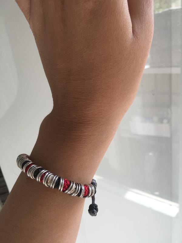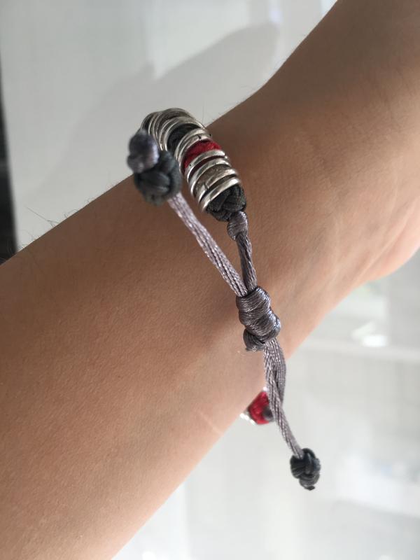 Стильный браслет из атласных лент и метала Parfois в очень красивом сочетании оттенков серого, красного и белого