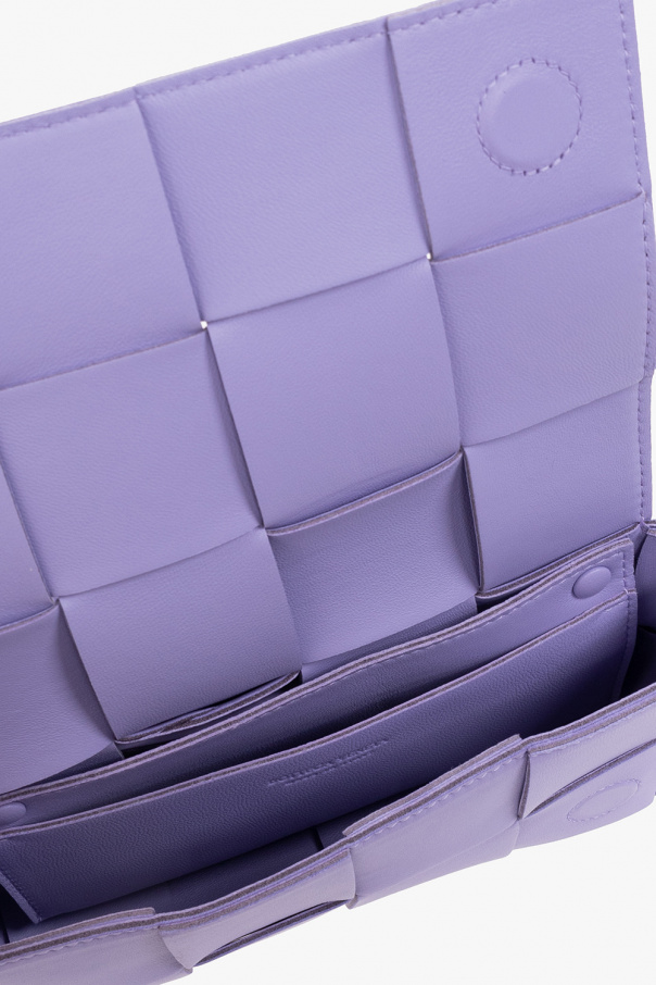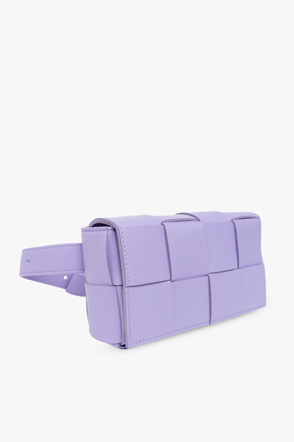 Light purple ‘Cassette Mini’ belt bag from Bottega Veneta. Made from lamb leather with the brand\'s signature Intreccio weave, this design secures with magnetic snaps and features an adjustable strap, silver-tone metal hardware and one slip pocket inside.