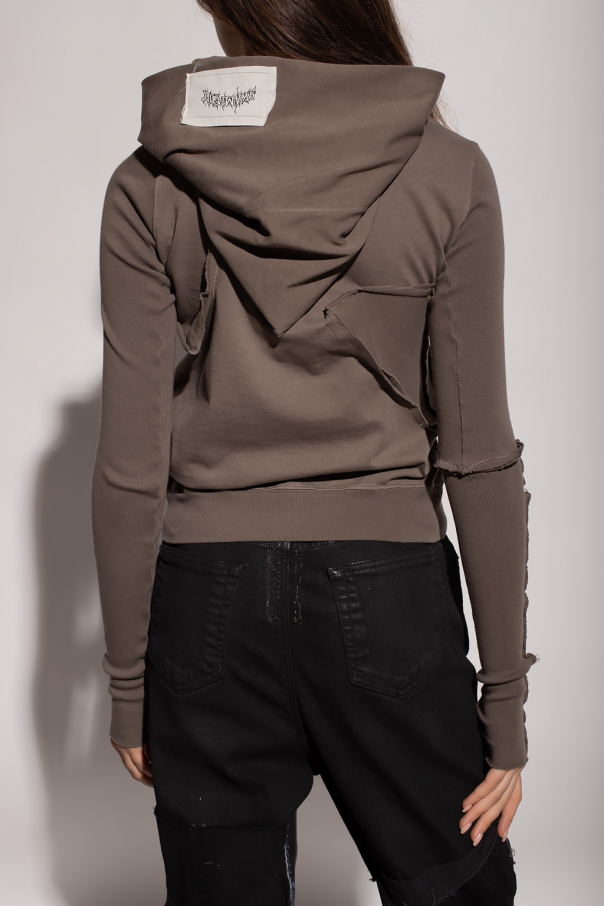 Brown sweatshirt from Rick Owens x Swampgod. Made of cotton, this style features a zip fastening, distinctive raw-cut stitching and seams, and an elasticated bottom hem and cuffs. Item designed to celebrate the 10th anniversary of VITKAC.