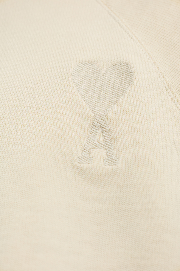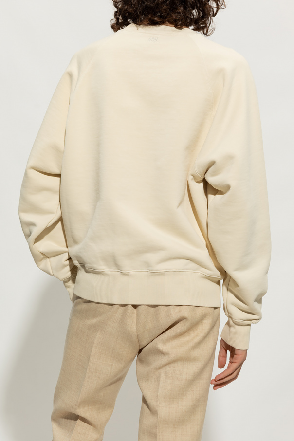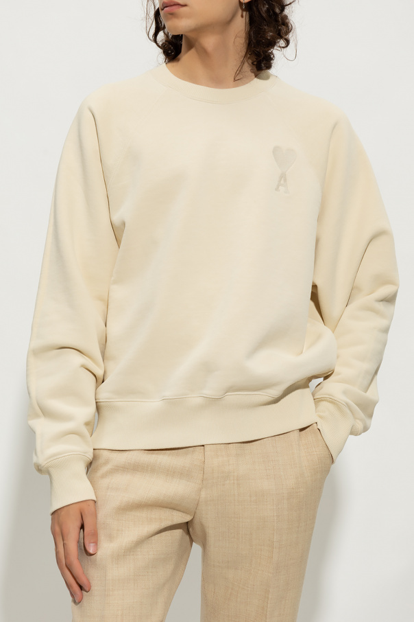 Cream crewneck sweatshirt from Ami Alexandre Mattiussi. Crafted from organic cotton with the GOTS certificate, this style features a relaxed silhouette, long sleeves, ribbed trims on the edges as well as ‘Ami De Coeur’ embroidery on the front and logo embroidery at the back.