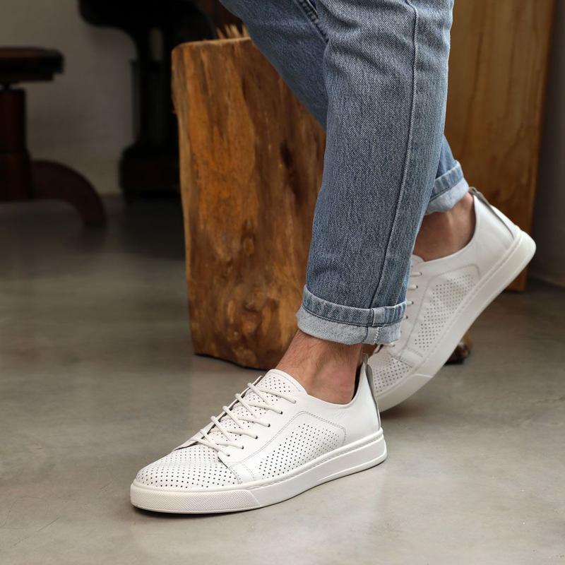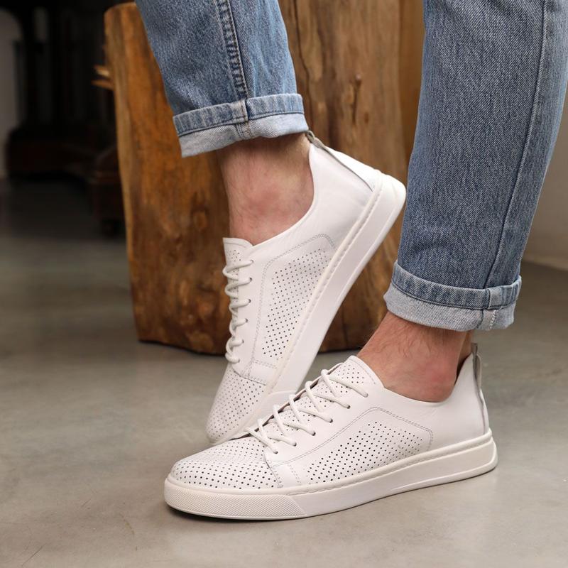 Практичний варіант для повсякденного гардероба - чоловічі білі кеди Zumer . Універсальне забарвлення дозволяє поєднувати їх з одягом різноманітних відтінків. Взуття виготовлене з натуральної шкіри, вкрите отворами для перфорації, що гарантує чудову повітропроникність, комфорт у використанні та довговічність. Просиліконена устілка додає зручності під час ходіння. Легкість і чудове зчеплення забезпечує зносостійка прошита підошва. Використовуйте ці шкіряні кеди для створення привабливих образів у casual-стилі, які підкреслять вашу індивідуальність.