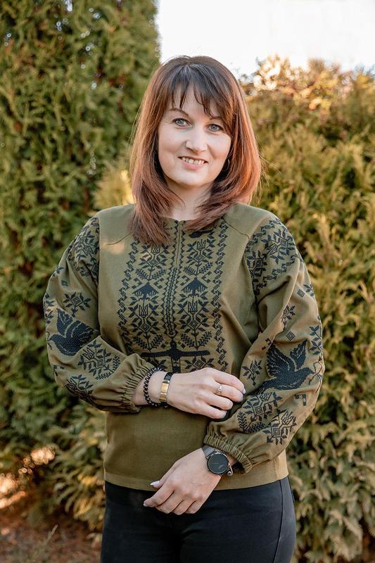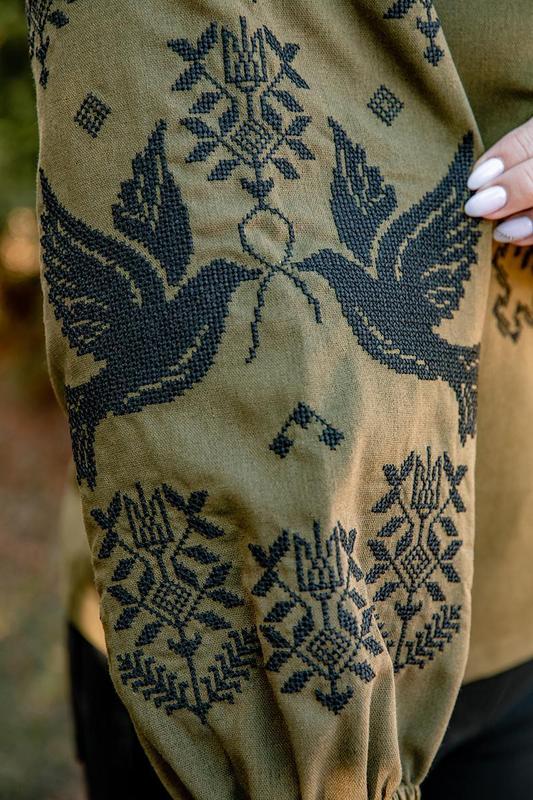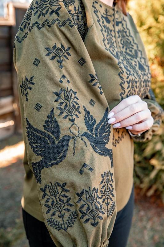 Вишиванка жіноча хакі — патріотична українська сорочка, виготовлена з