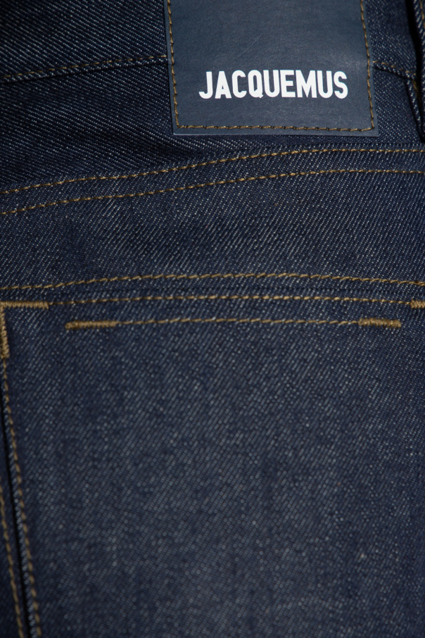 Navy blue ‘Yelo’ jeans from Jacquemus. Crafted from organic cotton, this pair falls with straight legs and features a zip fly with a button, four slip pockets and a logo patch at the back.