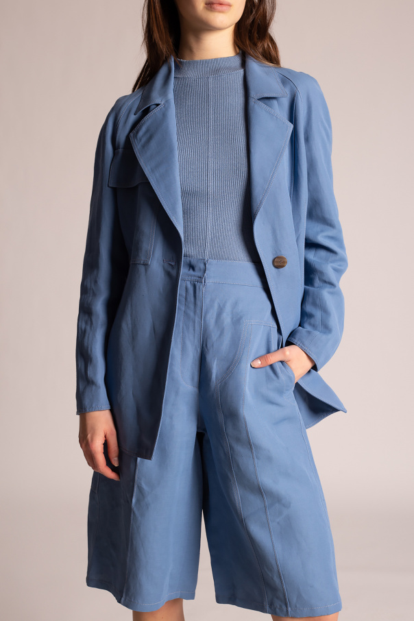 Blue blazer from Salvatore Ferragamo. Crafted from a linen blend, this garment features a button fastening, decorative stitching, flap pocket and side slits.