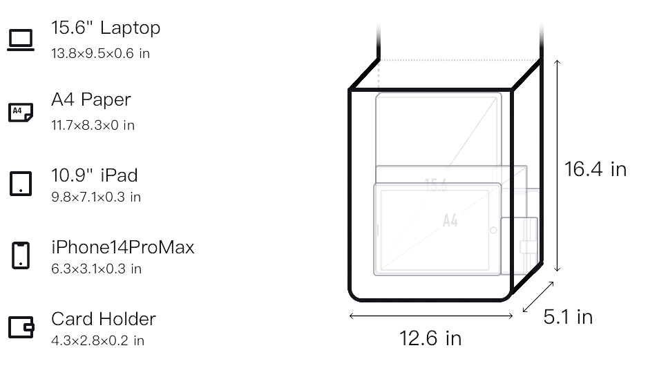 - Size:L*W*H: 12.6*5.1*16.4 in
