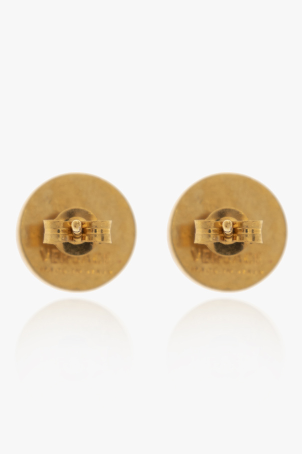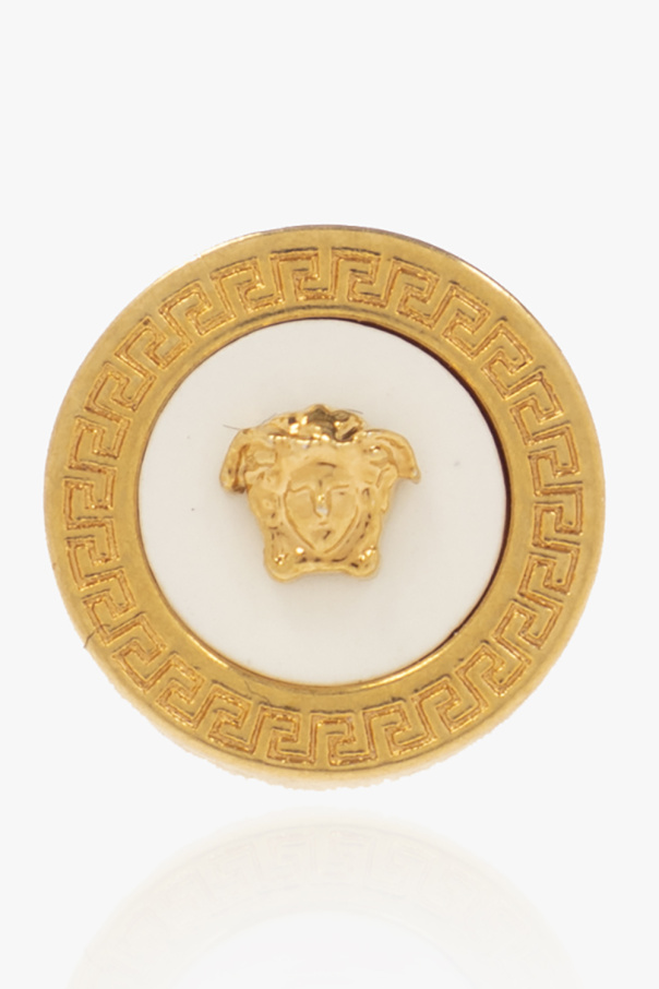 Gold-tone earrings from Versace. Made of brass, this pair features push back closure, the brand’s signature Medusa head detail, Greek pattern and white enamel finishes.