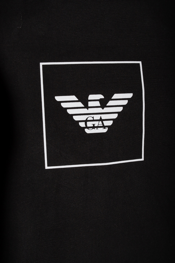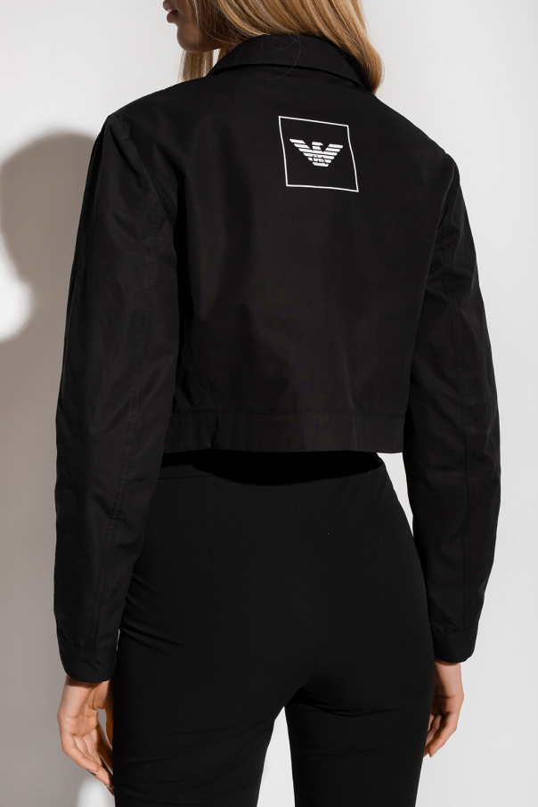 Black reversible jacket from Emporio Armani. Fastened with a two-way zip, this garment features a white logo print and pink lining.