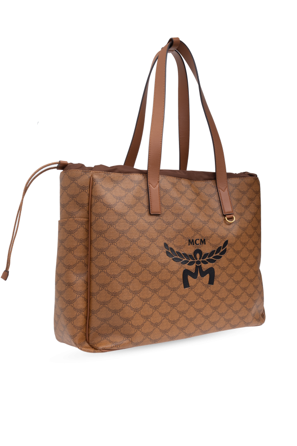 Introducing the quintessence of luxury and functionality - the MCM Visetos Shopper Bag. Crafted with meticulous attention to detail, this exquisite piece is a testament to the renowned craftsmanship associated with luxury brands. The bag features a classic rectangular shape with softly rounded corners, embodying timeless elegance. The bag\'s exterior showcases the iconic monogram pattern, a signature design element that gracefully intertwines the initials in a mesmerizing grid, enveloping the fabric in a tapestry of prestige. Complementing this pattern is a prominently displayed designer logo, adorned with leaf and ribbon graphics, enhancing its allure and affirming its distinguished heritage. This logo, set against the monogram backdrop, serves as a bold declaration of style and luxury. Constructed from 100% premium canvas, tinted in an opulent shade of brown, the bag exudes sophistication. The handles, crafted from smooth material that matches the bag\'s hue, are thoughtfully designed to facilitate shoulder wear, offering comfort and versatility. The interior, lined in a contrasting light fabric, is thoughtfully organized with compartments, including a zippered pocket and two slip pockets, ensuring your essentials are neatly stored and easily accessible. Moreover, the bag is ingeniously secured with drawstrings on the sides, adding an element of practicality and style. Whether you\'re navigating the bustling city streets or attending a high-profile event, the MCM Visetos Shopper Bag is your companion in embodying elegance. Why Purchase This Product? Exclusive design by MCM, a symbol of luxury and quality. Elegant monogram pattern paired with a distinctive designer logo. Functional and stylish with internal compartments for organization. High-quality canvas material and meticulous craftsmanship. Adaptable for various occasions, enhancing any ensemble with its unique charm.