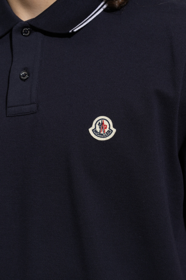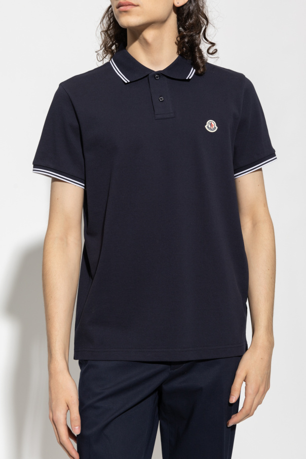 Navy polo shirt from Moncler. Crafted from cotton, this garment features buttons and logo patch.