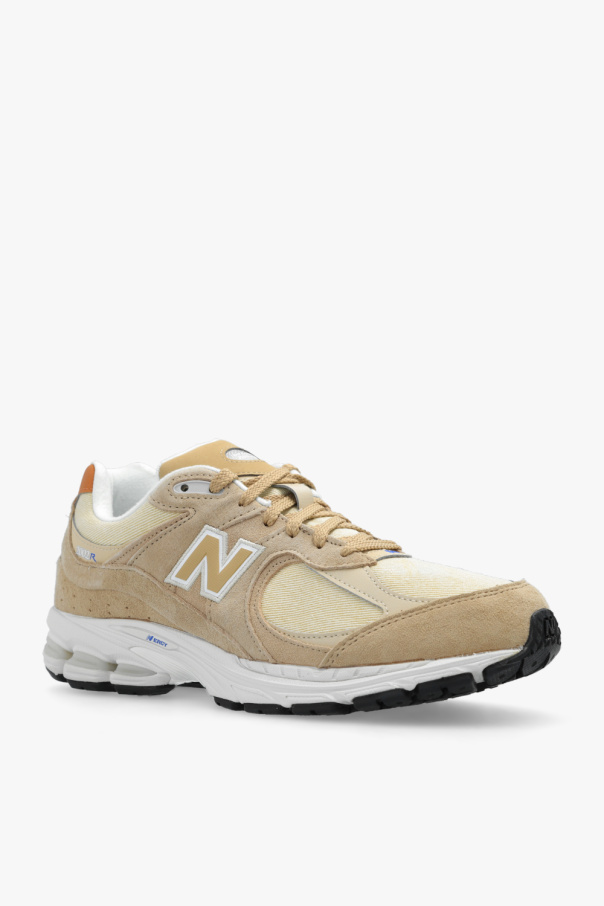 Beige and white ‘M2002REF’ sneakers from New Balance. Crafted from leather and fabric overlays, this lace-up model sits on a white rubber sole and showcases a logo application and model\'s symbol.